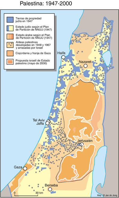 Las Naciones Unidas, organismo creado luego de la Segunda Guerra Mundial, elaboró un plan en el año 1947, que fraccionaba a Palestina en dos países independientes, mientras Jerusalén se transformaría en ciudad internacional. Este plan fue rechazado por los árabes, que invadieron Palestina.